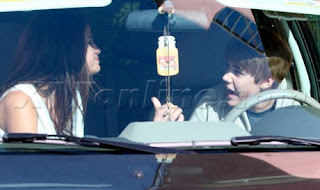 Selena Gomez de 18 años de edad, quien se estuvo con una camiseta blanca fue captada en un foto agarrada de la mano de Justin Bieber y mirándolo fijamente a los ojos muy contenta y enamorada.